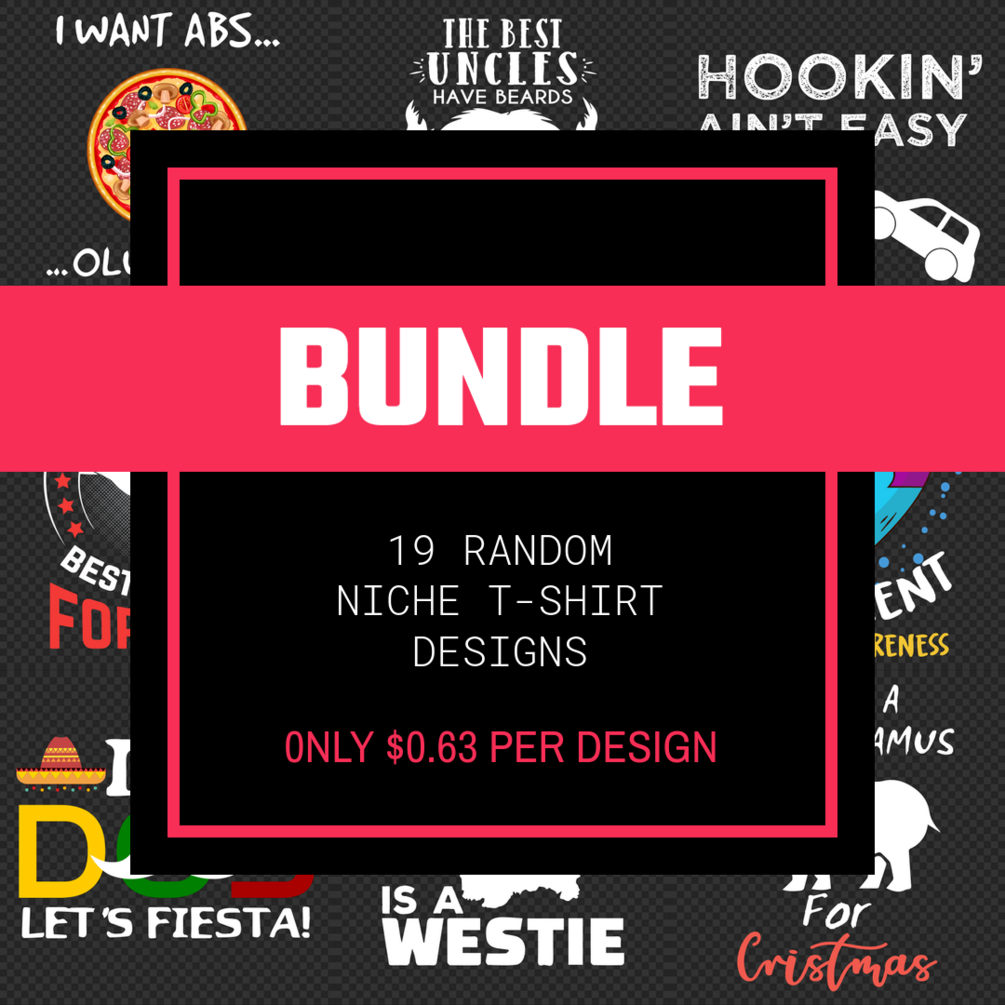 Bundle of 19 random niche t-shirt designs. Perfect for your Merch by Amazon or another POD project. You can use designs not only on t-shirts but also on mugs, tote bags, phone cases, and other merchandise.